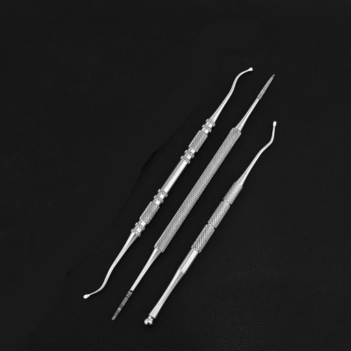 - 1 x sonda podologiczna z teksturowaną rękojeścią (do wrastających paznokci, również usuwania brudu pod paznokciami)