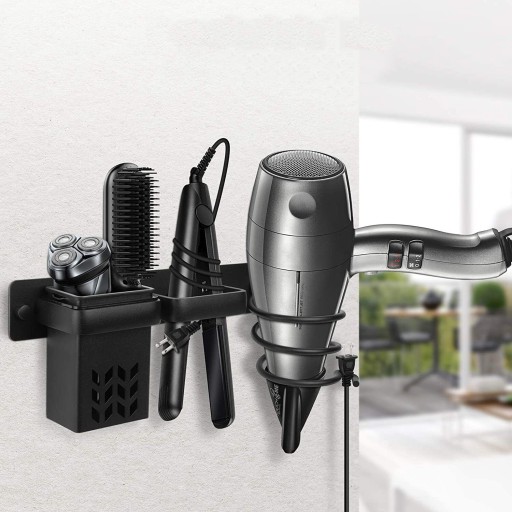 ta ścianka uchwytu na suszarkę do włosów ma 3 sekcje, w jednej z nich znajduje się metalowy kubek, dodatkowe miejsce do przechowywania dodatkowych produktów do włosów i kosmetyków.Możesz przechowywać wszystkie narzędzia do stylizacji na gorąco, grzebienie i szczotki.Oszczędność miejsca i łazienka zawsze pozostaje czysta.