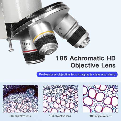 Powiększenie można uzyskać w zakresie 64X-2400X. Należy wybrać odpowiednie obiektywy i okulary, a następnie zastosować wielokrotności, aby znaleźć najdokładniejsze wielokrotności.
