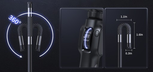 ✅Obrotowy endoskop: Miniaturowa sonda o średnicy 8 mm z łatwością manewruje w ciasnych przestrzeniach. Dzięki dwukierunkowej sondzie obrotowej 360°, która eliminuje potrzebę częstej regulacji kabla, możesz kompleksowo sprawdzić różne obszary, po prostu obracając pokrętło sterowania kierunkiem kamery węża. Umożliwia to dotarcie do skomplikowanych lokalizacji wewnętrznych, które wcześniej były niedostępne do oglądania.