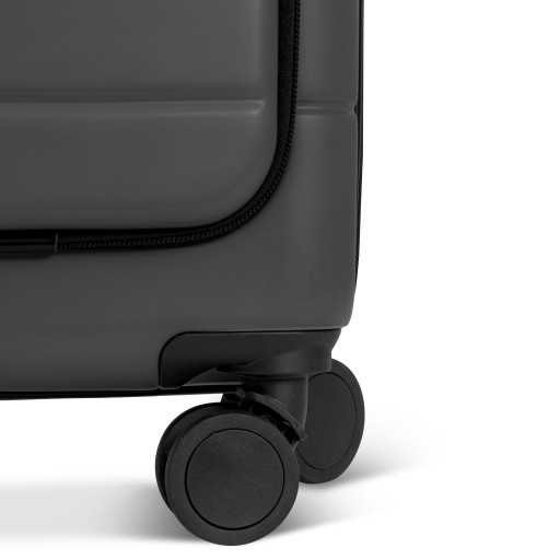 Boczna kieszeń w walizce kabinowej umożliwia łatwy dostęp do laptopa lub dokumentów, co jest niezwykle przydatne w podróży.