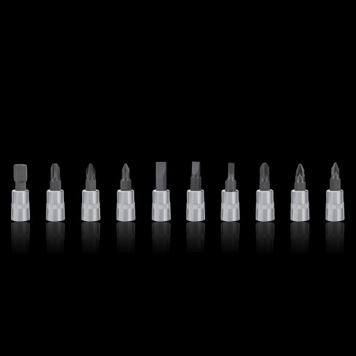 - 13 x Nasadki 1/4'': 4; 4,5; 5; 5,5; 6; 7; 8; 9; 10; 11; 12; 13; 14 mm