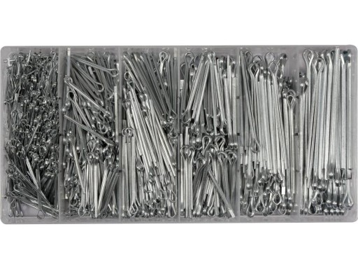 - Zawartość zestawu: zawleczki proste x1000 /(1.5x25 mm x380, 2.4x25 mm x240, 2.4x38 mm x140, 3x32 mm x115, 3x50 mm x75, 4x60 mm x50/)