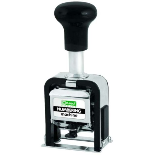 Automatyczny numerator w solidnej metalowej obudowie z elementami plastikowymi oraz ergonomicznym plastikowym uchwytem. Umożliwia automatyczne numerowanie stron dokumentów w sposób ciągły, tzn. każdy kolejny numer jest większy o jeden. Wyposażony w funkcję powtarzania co 0, 1, 2, 3, 4, 5, 6, 12 razy, co umożliwia numerowanie np. oryginału i kilku kopii tym samym numerem.