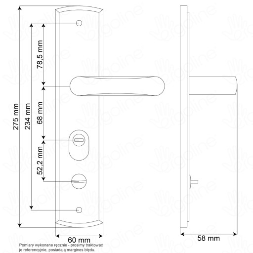 - Otwory na śruby mocujące klamkę oraz pokrętło otwierające również muszą znajdować się wewnątrz budynku.