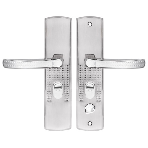 - Solidna konstrukcja: Wykonana z solidnego metalu, wyposażona w sprężyny wspomagające prawidłową pracę klamki; klamka po naciśnięciu samoczynnie wraca do pozycji właściwej (poziomej).