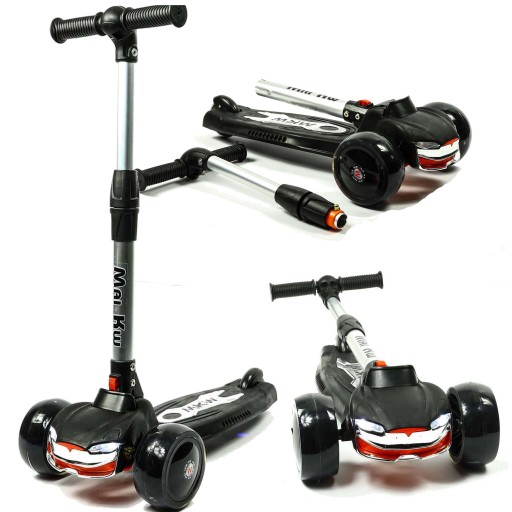 Niezwykle bezpieczna hulajnoga wyposażona w świecące koła i świecące światła z przodu oraz światła pod podestem