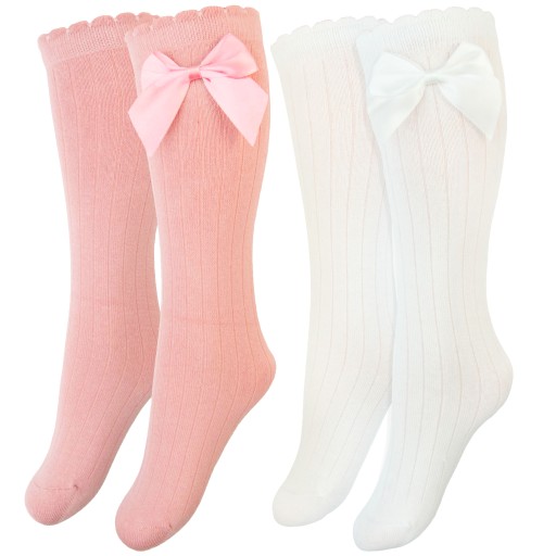 Piękne klasyczne podkolanówki prążkowane z kokardkami - zestaw dwóch par.