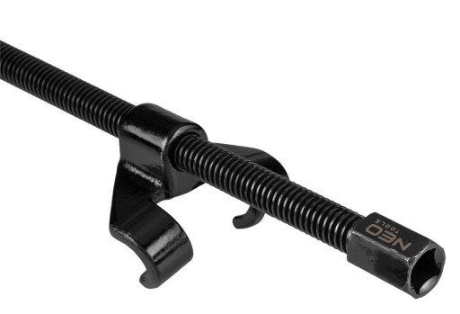 Ściągacze do sprężyn NEO (nr ref. 11-807) odkuwane, o długości 300 mm. W zestawie znajdują się 2 ściągacze do obsługi wszystkich typów sprężyn, np. w kolumnach McPhersona. Ściągacze współpracują z grzechotką 1/2", posiadają 4 punkty mocowania oraz solidny gwint umożliwiający bezpieczną pracę pod dużym obciążeniem. Gwarantem wysokiej jakości i niezawodności produktu jest certyfikat TÜV Rheinland. Marka NEO spełnia oczekiwania profesjonalistów.