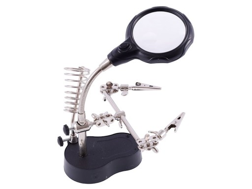 Uchwyt lutowniczy z uchwytami i oświetleniem LED. Uchwyt będzie pomocą przy wykonywaniu prac lutowniczych oraz dla modelarzy.