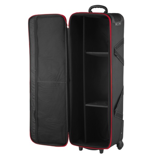 Duża torba na kółkach, do bezpiecznego transportu sprzętu studyjnego.