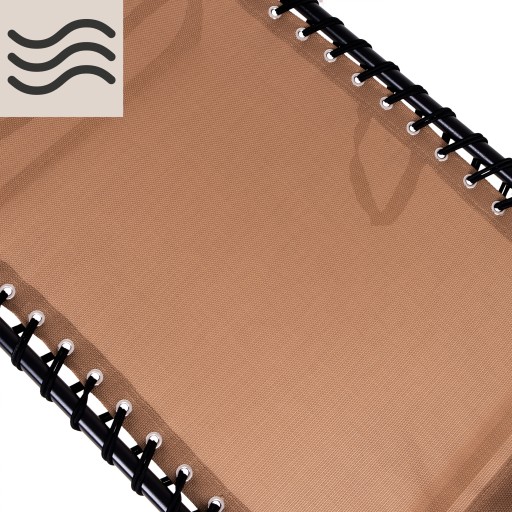 - Dzięki specjalnemu materiałowi oparcia leżak zapewnia cyrkulację powietrza umożliwiając tym samych lepsze chłodzenie ciała w upalne dni.