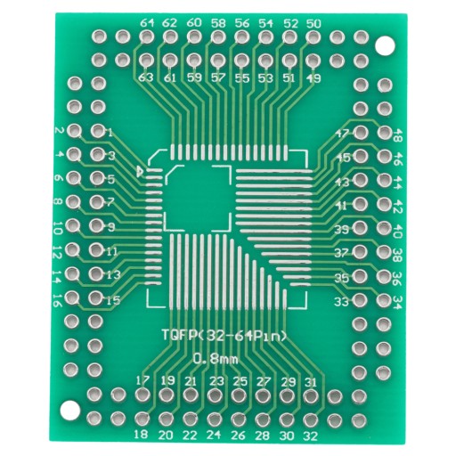 Adapter TQFP32-64-100 Pin 0.5-0.8 na DIP to konwerter umożliwiający połączenie układów TQFP32-64 o rozstawie pinów 0,8 mm z gniazdami DIP z jednej strony oraz układów TQFP32-100 o rozstawie pinów 0,5 mm z drugiej strony. Jego standardowy rozstaw pinów wynoszący 2,54 mm ułatwia integrację z innymi projektami elektronicznymi.