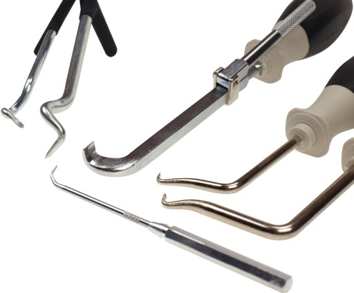 - 6 specjalnie wyprofilowanych przyrządów do demontażu pierścieni uszczelniających - o-ringów i simeringów.