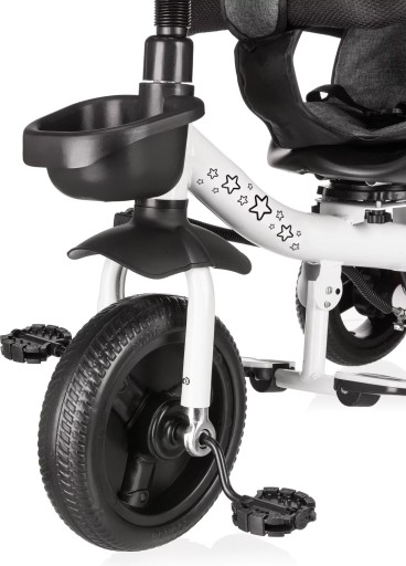 W łatwy sposób zamienimy go w rowerek trójkołowy z pedałami, który pozwoli na dalsze trenowanie swoich zdolności motorycznych oraz pewności ciała. Wystarczy tylko odpiąć barierkę zabezpieczającą oraz prowadnicę i maluch może ruszyć przed siebie! Kierownica posiada antypoślizgowe nakładki co pozwoli na pewny chwyt, a koła z pianki EVA zapewnią komfortową jazdę niezależnie od nawierzchni.