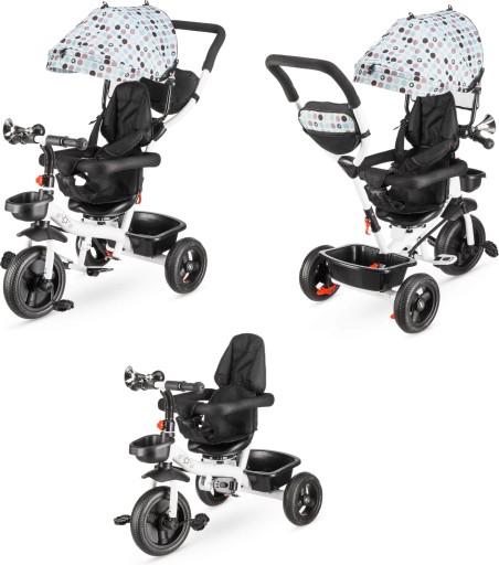 Będzie stanowił bezpieczny i wygodny środek transportu, który będzie mógł zastąpić tradycyjną spacerówkę. Obrotowe siedzisko pozwoli na ustawienie go przodem lub tyłem do kierunku jazdy. Pozwoli to, więc dostosować go do indywidualnych preferencji maluszka.