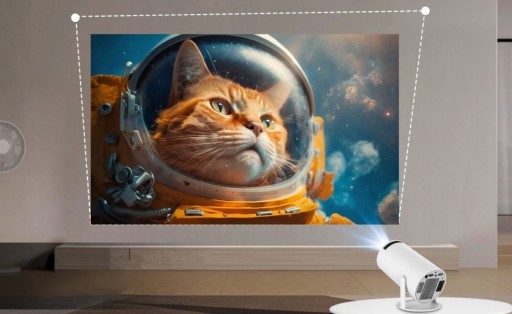 Korzystanie z tego wszechstronnego projektora jest łatwe: 180-stopniowy stojak obrotowy umożliwia umieszczenie obrazu w dowolnym miejscu od podłogi do sufitu, zapewniając elastyczność odtwarzania filmów.