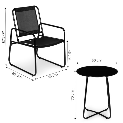 ZESTAW KOMPLET MEBLI OGRODOWYCH DWA KRZESŁA I STOLIK METALOWE CZARNY