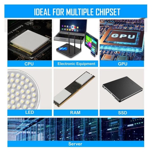 Doskonale zastępuje moduł pasty smarną do radiatorów, doskonale nadaje się do podstawowej sterowniczej, silnika, elektroniki, procesora, GPU, radiatora, diody LED zasilania, mechaniki samochodowej, hosta komputera, laptopa, DVD, VCD, LID, dekodera, LED IC SMD DIP wszystkich moduły jakości