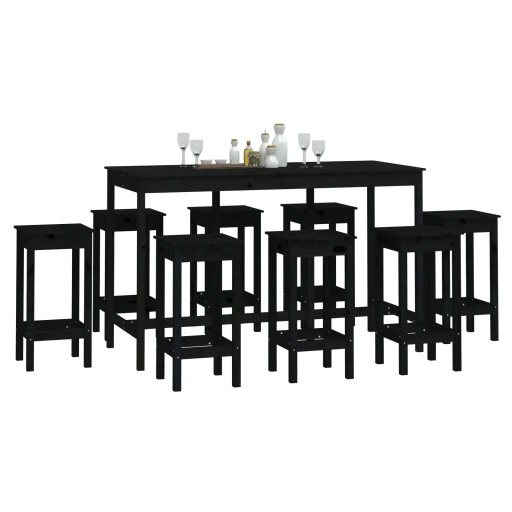 9 częściowy zestaw mebli barowych, czarny, lite drewno sosnowe Lumarko!