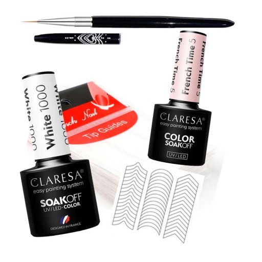 Zestaw Claresa French Time + Claresa White 1000 + Pędzelek + Paski Do Frencha