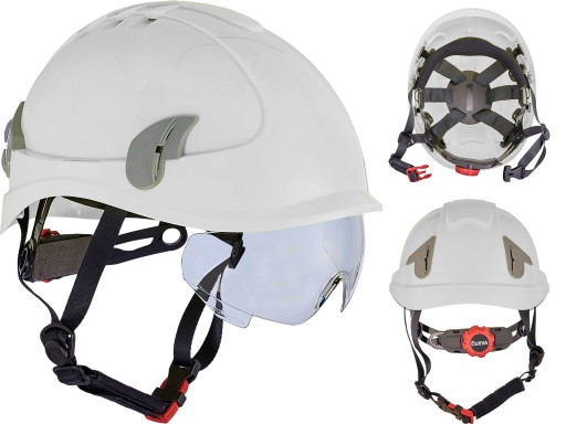 ✅Kask posiada zintegrowane okulary wysuwane i chowane do wnętrza kasku, które spełniają normę EN166, zapewniając ochronę oczu przed różnymi odpryskami.