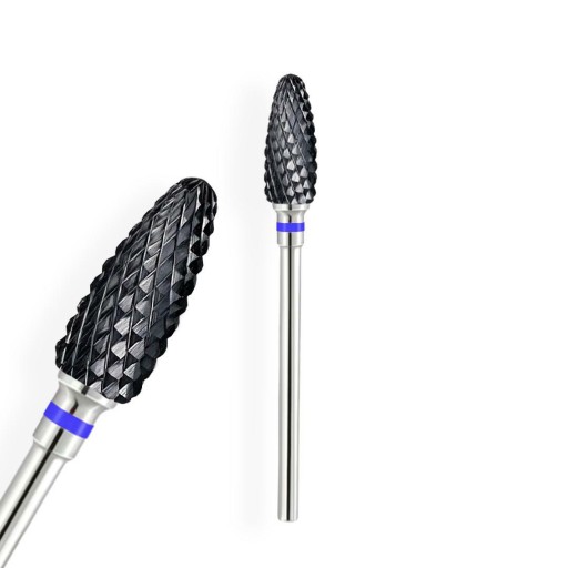 Frez ceramiczny o kształcie szyszki oznaczony kolorem niebieskim o średniej gradacji. Ten frez sprawdzi się idealnie do usunięcia starej masy żelowej jak i akrylowej. Frez black jest przeznaczony dla osób zaawansowanych, które mają doświadczenie w obsłudze frezarki i pracują na podobnych frezach.