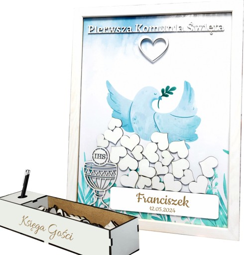 Księga Gości Personalizowana na Pierwszą Komunię Świętą z Drewnianą Ramą