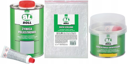 BOLL Żywica poliestrowa jest to środek, który w połączeniu z matą lub tkaniną szklaną służy do wypełniania znacznych ubytków materiału w karoseriach samochodowych, łodziach, przyczepach itp. jak i do wzmacniania i usztywniania konstrukcji naprawianych elementów.