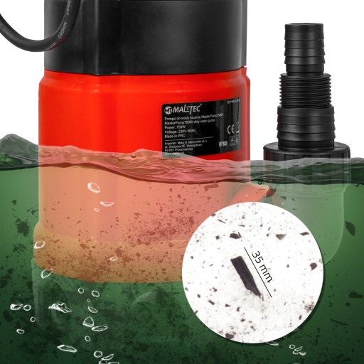 Pompa do wody MasterPump750W to wysoce wydajne urządzenie, które pozwala na efektywne pompowanie wody z szamba i innych trudno dostępnych źródeł wody brudnej czy czystej. Pompa może obsługiwać wodę zawierającą większe cząstki zanieczyszczeń
