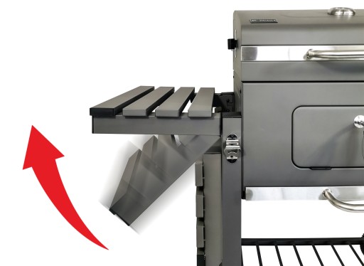 ✔️ Grill posiada dwie składane boczne półki oraz jedną zamontowaną da dole.