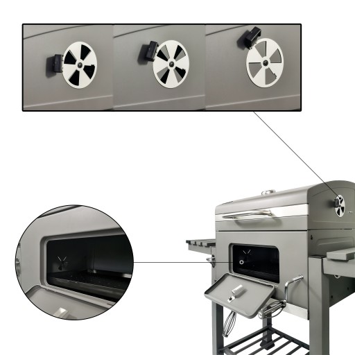 ✔️ Na obu bokach grilla są otwory wentylacyjne z regulacją przepływu powietrza.