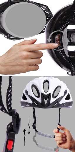 - Regulowany pasek pod brodą z miękką wyściółką na rzep
