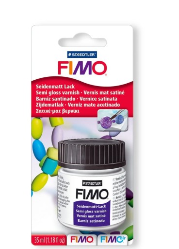 Bezwonny lakier na bazie wody matowy. Warstwa lakieru sprawia, że kolory wyglądają intensywniej a struktura jest bardziej widoczna. Po wysuszeniu jest przezroczysty i daje wysoką odporność na zarysowania. Wysycha powierzchniowo po 20 min., całkowicie po 24 godzinach. Polecany do FIMO i FIMO air. Pojemnność: 35ml