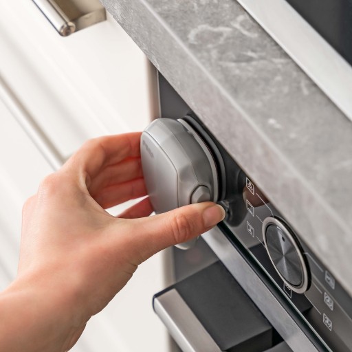 - Co ważne, zabezpieczenie możesz odblokować obracając w obie strony (w lewo lub w prawo) - dzięki temu jeszcze łatwiej zamontować zabezpieczenie tak, aby nie blokowało Ci dostępu do kurków piekarnika