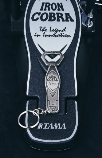 Świetny gadżet dla każdego miłośnika bębnów - otwieracz do butelek w formie breloczka do kluczy, w kształcie miniaturowego "footboardu" kultowej stopy Iron Cobra.
