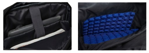 Torba posiada komorę na laptopa wyłożoną w całości specjalnym materiałem z wypustkami. Dzięki takiemu rozwiązaniu laptop jest chroniony ze wszystkich stron i nawet w przypadku upuszczenia torby lub uderzenia jej o coś komputer będzie bezpieczny. Komora na laptopa zapinana jest na rzep.