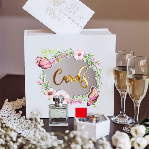 Akrylowe pudełko na karty ślubne z nadrukiem kwiatowym na urodziny w stylu A