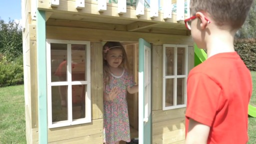 Ten uroczy, przestronny drewniany domek z werandą stanie się ulubionym miejscem do zabawy i spędzania czasu na świeżym powietrzu. Domek został wykonany z naturalnego, certyfikowanego drewna FSC, co nadaje mu rustykalny i przytulny wygląd. Domek jest przestronny i wygodny a podłoga wyłożona jest wytrzymałymi deskami. Maksymalna łączna waga użytkowników domku to 150kg. Dzięki temu dzieci będą miały duże, mocne, wygodne i bezpieczne miejsce do zabawy.