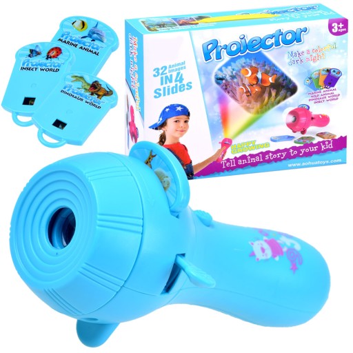 Projektor ma podstawki pod spodem i uchwyt do przesuwania slajdów. Latarka bez slajdów może także oświetlać ciemne zakamarki pokoju. Zastosowanie projektora w rękach dziecka może być wszelakie. Zestaw zapakowany jest w efektowne opakowanie, świetnie nada się na prezent.