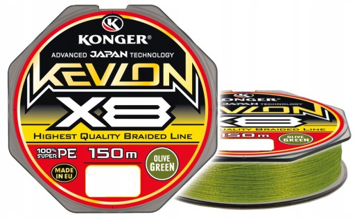 Plecionka Kevlon X8 to najnowsza plecionka w naszejofercie. Wykonana w japońskiej technologii z włókien PEo podwyższonej wytrzymałości, bardzo ciasnym splociei śliskiej powierzchni, sprawia że wędkowanie staje sięjeszcze łatwiejsze. Do wyboru dajemy Wam 10 średnicod 0,04 mm do 0,25 mm w nawoju 150 m w bardzolubianym przez wędkarzy kolorze olive green.