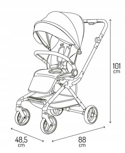 Niewątpliwym atutem wózka MoMi ADELLE jest obrotowe siedzisko, które można obrócić o 360 stopni, dzięki czemu Dziecko może korzystać z wózka tyłem i przodem do kierunku jazdy.