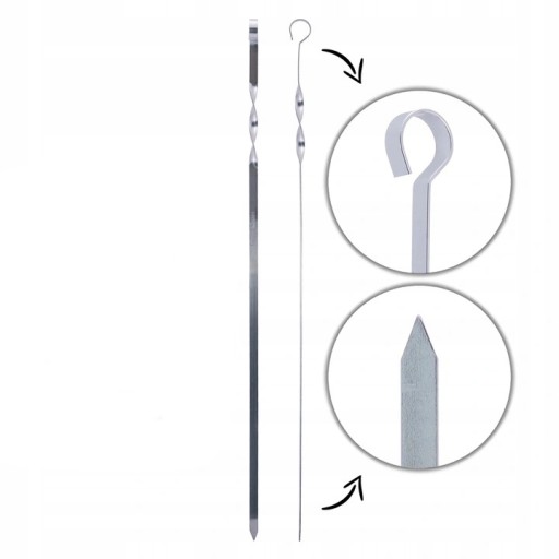 ✅ WYGODNE - Zakończone wygodną pętelką za pomocą której w łatwy sposób przeniesiemy szaszłyki. Szpikulec jest na tyle długi, aby obracać nim przy zamkniętej pokrywie grilla.