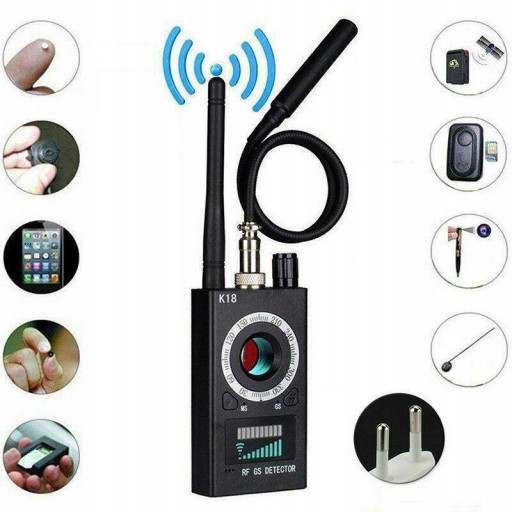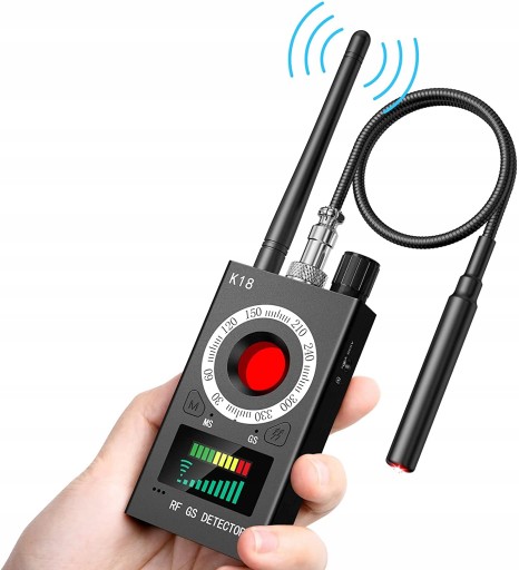 - Ten detektor może wykrywać fale radiowe, pola magnetyczne, ukryte urządzenia z kamerami przewodowymi lub bezprzewodowymi.