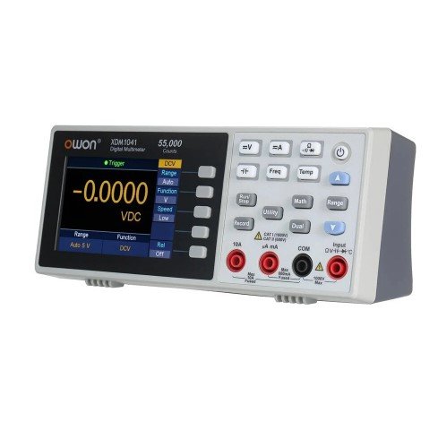 OWON XDM1041 to kompaktowy cyfrowy stołowy multimetr True RMS, który może mierzyć napięcie DC i AC, prąd DC i AC, rezystancję, częstotliwość, pojemność, diody testowe i przewodność obwodu testowego. Dodatkowo funkcjonalność urządzenia można rozszerzyć dokupując termoparę typu K do pomiaru temperatury (termopara NIE jest w zestawie!). Multimetr jest wyposażony w kolorowy 3,7-calowy wyświetlacz LCD o pojemności 55 000 odczytów.