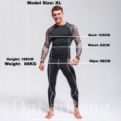 Koszulka i spodnie kompresyjne zostały zaprojektowane z 90% poliestru i 10% spandexu, który zachowuje swój kształt nawet po wielokrotnym praniu. Zestaw fitness baselayer zapewni ochronę dla Twojej skóry i stawów, będzie dobrze wspierać mięśnie z mniejszym ryzykiem wysypki, przegrzania lub zmęczenia mięśni podczas aktywności sportowej.