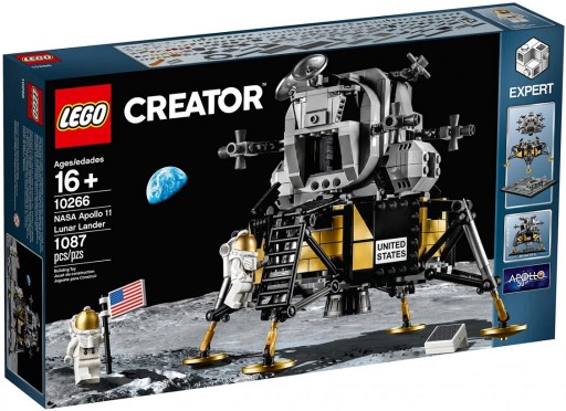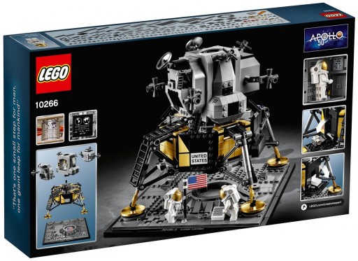 LEGO 10266 Creator Expert Lądownik księżycowy Apollo 11 NASA to klocki, które zostały wyprodukowane w ścisłej współpracy z Agencją NASA. Taka współpraca zaistniała, ponieważ 21 lipca 2019 roku świętowaliśmy pięćdziesięciolecie postawienia stopy na Księżycu przez Neila Armstronga. Z tej okazji powstał kolekcjonerski zestaw klocków LEGO 10266, który stanowi szczegółową replikę modułu księżycowego Apollo 11 Eagle. Wyposażony został z szereg realistycznych funkcji i detali, które sprawiają, że zabawa tym produktem czyni z nas quasi-kosmonautów! Detale, które zostały wykorzystane, by podnieść poziom wiarygodności to m.in. złote nóżki, panele, otwierane klapy, laser oraz drabina.