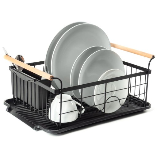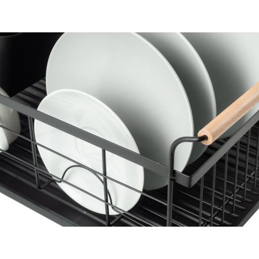 Elegancka suszarka do naczyń w kolorze czarnym. Posiada miejsce na talerze,