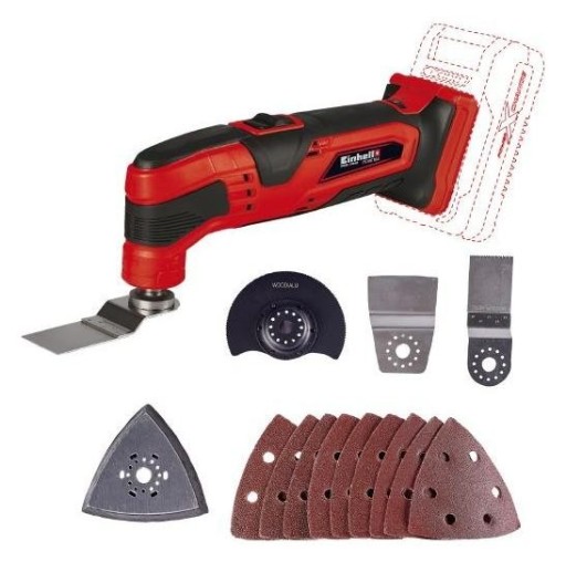 Narzędzie wielofunkcyjne TC-MG 18 Li-Solo to urządzenie o napięciu 18 V, które należy do rodziny Power X-Change firmy EINHELL. Wielofunkcyjny, wysokiej jakości pomocnik do prac związanych z rozbudową, renowacją i restauracją; umożliwia szlifowanie, skrobanie lub piłowanie. Magnetyczne mocowanie narzędzi z 12 regulowanymi ustawieniami umożliwia użytkownikowi szybką i wygodną wymianę akcesoriów. Elektronika prędkości umożliwia dostosowanie narzędzia do konkretnego materiału i zastosowania W zestawie znajduj się papiery ścierne, skrobak, ostrze do cięcia drewno/plastik oraz ostrze do cięcia metalu. Urządzenie nie posiada akumulatora i ładowarki, są one dostępne w sprzedaży osobno. System akumulatorowy Power X-Change to ponad 300 urządzeń pracujących na jednym typie akumulatora. Posiadając akumulator można dokupić pozostałe urządzenia w wersji SOLO – bez akumulatora i ładowarki. Dodatkowo istnieje możliwość dokupienia akumulatorów o różnej pojemności (od 2 Ah do 8Ah) i różnych typów ładowarek.
