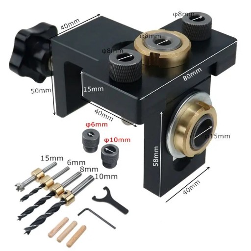 - Szablon posiada precyzyjną regulację, ma wyraźną i precyzyjną podziałkę, dzięki czemu można dokładnie dopasować głębokość otworu do grubości materiału, jest idealnym narzędziem do obróbki drewna i nie tylko.